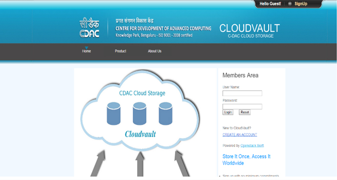 Cloud Vault is an enterprise-class cloud storage solution offered as Storage-as-a-Service. Users and organizations can use Cloud Vault to store large data efficiently, safely and cheaply. Its key features include Single Sign On (SSO) authentication using user mail-id, object-based storage, file and directory operations support, data isolation, reliability, high availability and 2-way redundancy for data, and multiple client interfaces such as web, java API’s and command line.