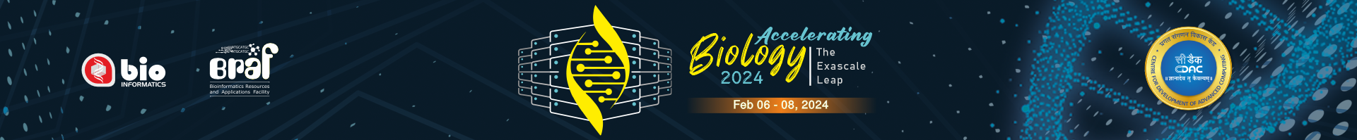 Centre for Development of Advanced Computing (C-DAC) is the premier R&D organization of the Ministry of Electronics and Information Technology (MeitY) for carrying out R&D in IT, Electronics and associated areas. As a scientific society, C-DAC has been continuously engaged for over three and a half decades, towards the design, development and deployment of electronics and advanced Information Technology (IT) products and solutions for the benefit of the society. C-DAC's thrust in meeting the national agenda has manifest itself in the execution of several key projects, leading to the creation of a strong brand equity for its inherent expertise and capabilities, in the global context. Presently, this expertise extends to the field of High Performance Computing (HPC) fueling various scientific, engineering and business applications. Fostering an environment of innovation and dealing with cutting edge technologies. C-DAC is actively engaged in indigenous R&D of HPC components (processor, server board, interconnect, cluster and cooling systems), HPC system software, HPC applications, solutions and services, grid computing, cloud computing, big data analytics and Quantum computing. Under the National Supercomputing Mission, C-DAC's PARAM series of supercomputers with a cumulative computing power of 24 PF have already been deployed at various premier academic institutions across the nation. . In-house developed hardware components in the form of Reconfigurable Computing System (RCS) cards specific for particular scientific applications have accelerated them many folds. Over the years the Bioinformatics Group of C-DAC has developed into an active centre of bioinformatics research, applying HPC to accelerate biological research towards the betterment of human life.