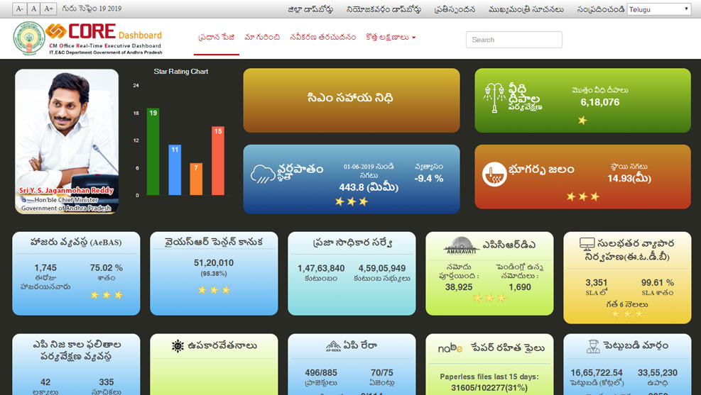 CORE (CM Office Real-time Executive) Dashboard is an initiative of Government of Andhra Pradesh for visual display of the department’s information. C-DAC has localised CORE Dashboard Portal for Telugu language.