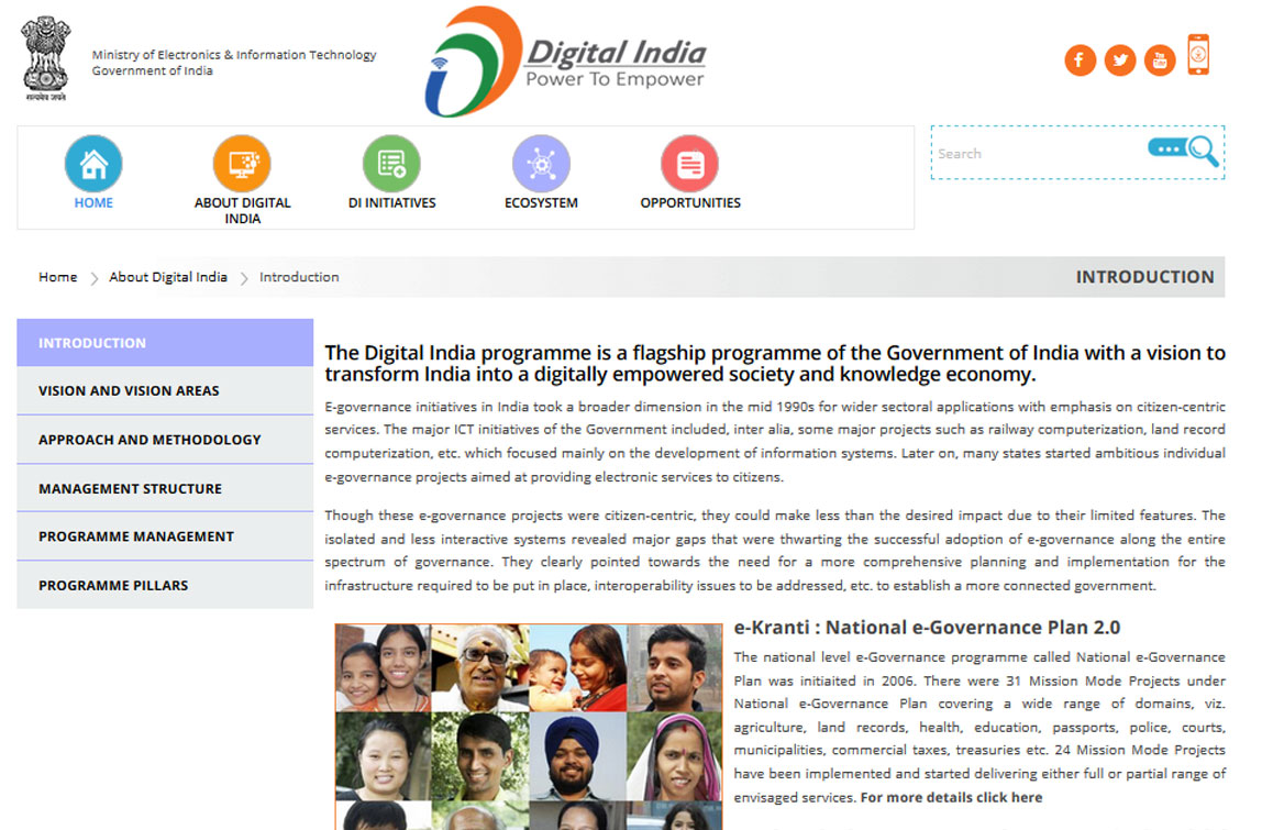 Integration of Transliteration based typing (iSuggest) mechanism for typing advisory SMS for Kisan in 11 Indian languages for Agriculture Department, Govt of India The Digital India programme is a flagship programme of the Government of India with a vision to transform India into a digitally empowered society and knowledge economy. Translation Snippet for 10 languages is used by the portal to translate it content in Indian languages