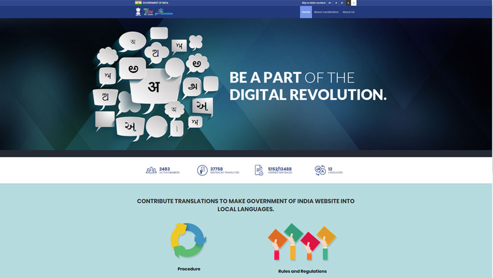 The Digital India programme is a flagship programme of the Government of India with a vision to transform India into a digitally empowered society and knowledge economy. Translation Snippet for 10 languages is used by the portal to translate it content in Indian languages