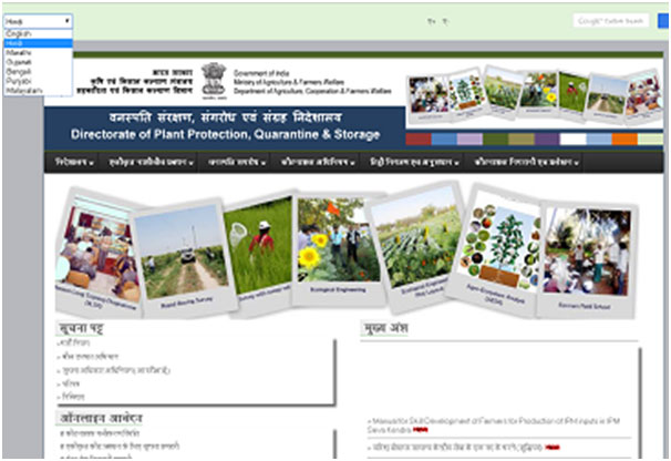 This portal provide information about plant protection by re promotion of Integrated Pest management, ensuring availability of safe and quality pesticides for sustaining crop production from the ravages of pests and diseases, streamlining the quarantine measures for accelerating the introduction of new high yielding crop varieties. As the information is useful for farmer, the multilingual content will be more beneficial. So Translation Snippet for 6 languages is used by the portal to translate & manage it content in Indian languages.