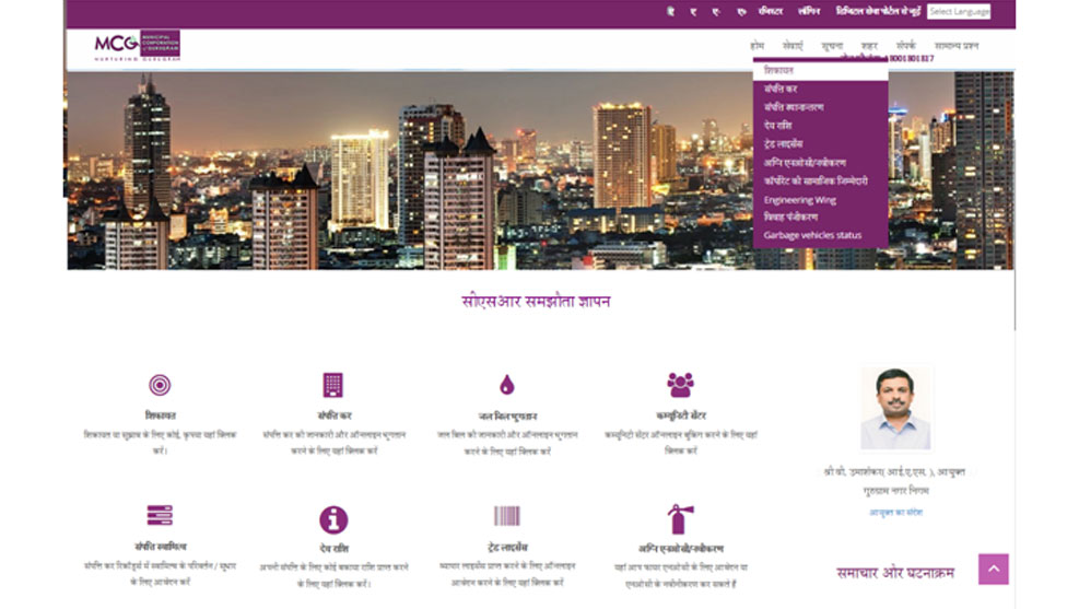 The mcg portal provides various online citizen services offered by Municipal Corporation. Go Translate Snippet for Hindi is used by the portal to translate its content on the fly.