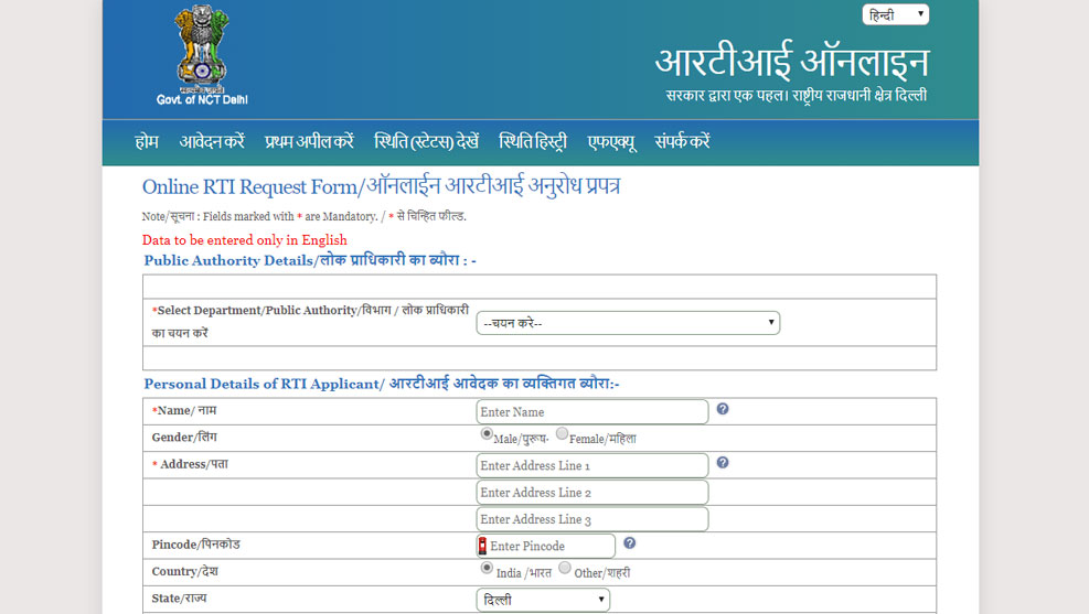 Delhi RTI portal is using CDAC's Transliteration based Indian Language typing solution to type Address and Text for RTI request. Online RTI information system portal is used to file RTI for the Departments/Public Authorities of the Government of NCT of Delhi.