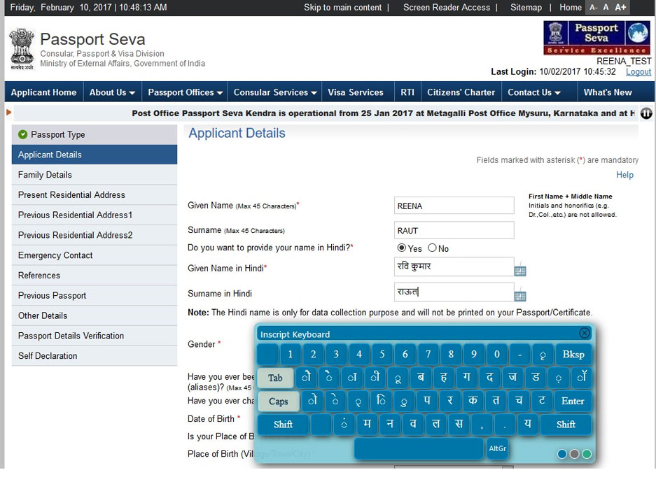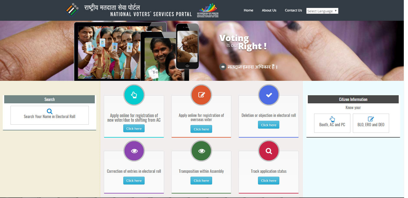 National Voters' Services Portal provides National services for voters viz. Registration as new voter, correction of entries in electoral roll, Name search in electoral roll etc. C-DAC has integrated Transliteration based typing service in National Voters' Services Portal for entering person names in Regional language.