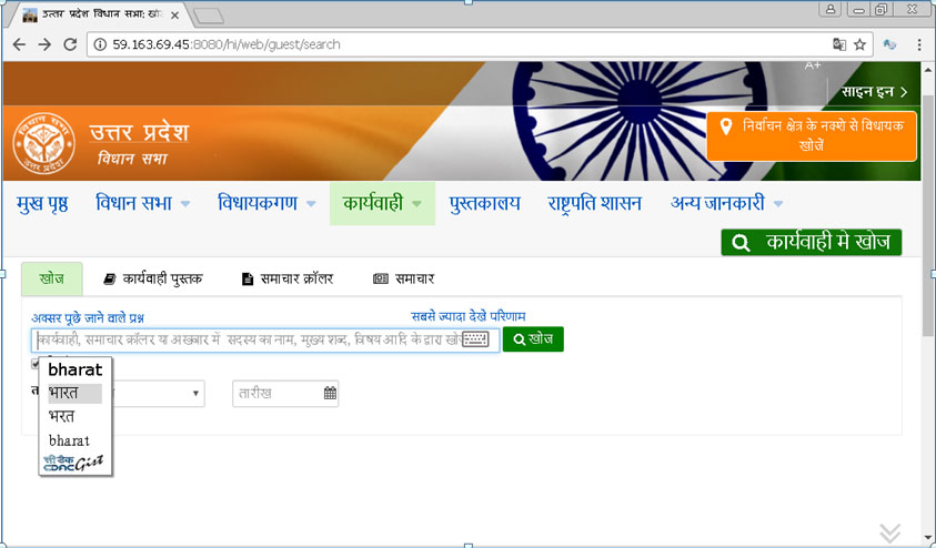 C-DAC has integrated Transliteration based typing service in Uttar Pradesh Vidhan Sabha portal