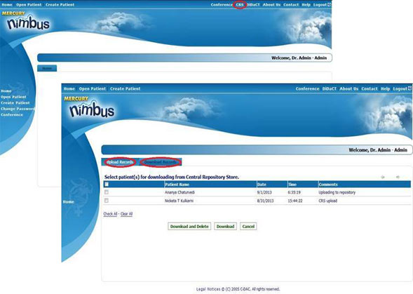 - On demand upload and download of patient record to/from repository