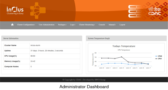 1. Management software for deploying compute nodes: InClus has provided web based GUI to install, manage and deploy compute nodes.