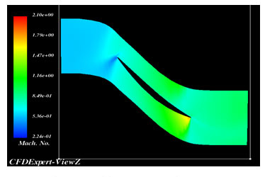 Compressible fluid flow in a Convergent Divergent Nozzle at a Mach number of 0.75