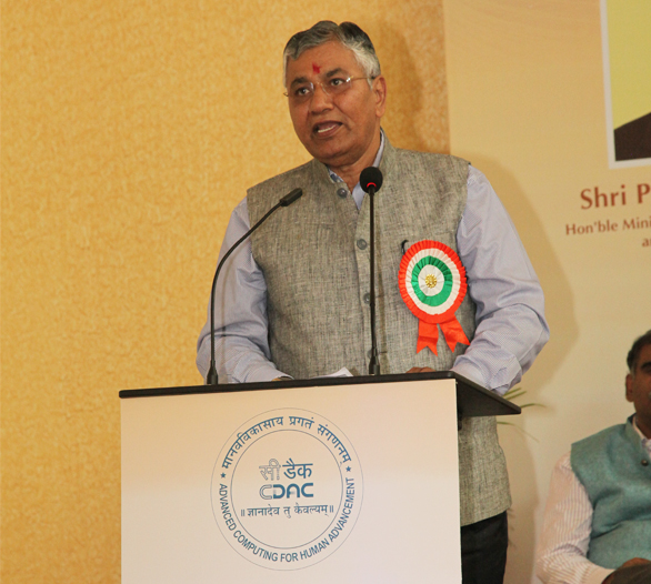 Shri P P Chaudhary, Hon'ble Minister of State for Law & Justice and Electronics & IT, Govt of India inaugurated the new facility of the Advanced Computing Training School (ACTS) at C-DAC Innovation Park, Pune on November 19, 2016. Also present on the occasion were Prof Rajat Moona, Director General, C-DAC, Dr Hemant Darbari, Executive Director, C-DAC, Pune, and other senior members of C-DAC and ACTS. The new facility will incorporate both classrooms and state-of-the-art IT laboratories to cater to the different training programmes conducted by C-DAC ACTS. Shri P P Chaudhary also released two new products, namely the Mobile IP App, a mobile based application to provide IPR services and e-Reception, a tablet based mobile reception desk as a part of the event.