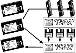 Then the different language subtitles are merged and the subtitle data is generated. This is transferred to the video-tape with the help of LIPS master station. This digitally encoded subtitle tape is used for telecast.