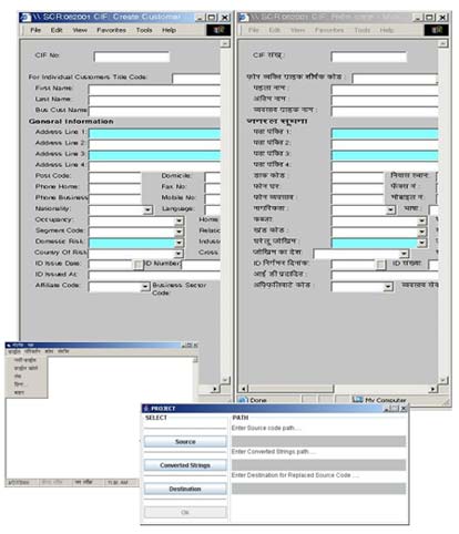 Web Code: HTML / ASP/ ASPX JSP pages of existing English application can also be converted to Indian Languages using this framework. It retains the physical layout of the web page and enables Indian Languages without changing the layout or the look and feel of the web-page. It can also handle aligned elements, which may not be in a table. XML and CSS parsers are used to update the pages seamlessly. Presentation layer changes are done using XML-XSLT based approach