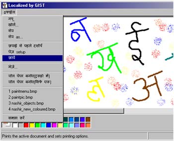 For existing applications, GIST has developed a localization framework, which can localize all the labels, menus, etc. into Indian languages. The conversion and change happens in the memory and provides a Indian language skin to an existing application. This application can localize almost the whole GUI of windows Operating System. This will include the Desktop, Menus, Common controls, different kind of views available etc.
