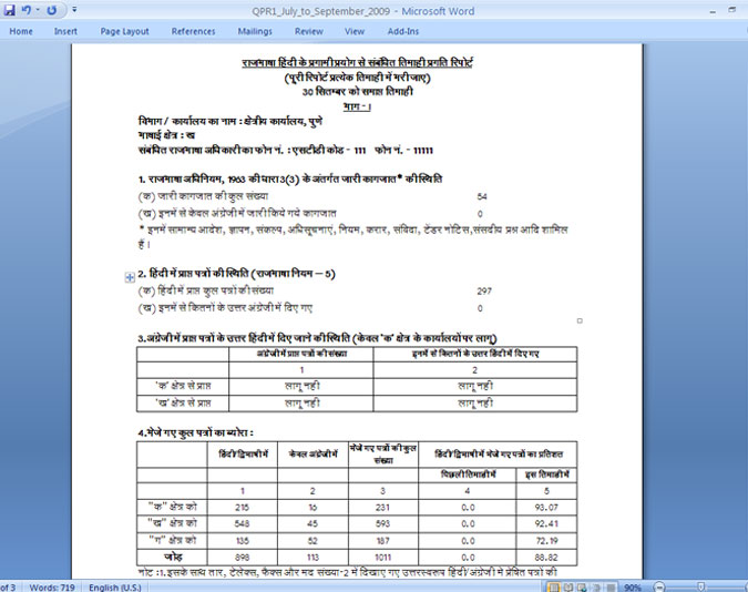 It offers a customizable framework for bilingual online Rajbhasha reporting that facilitates the efficacy of the data collation process, which was earlier retrieved from handwritten reports or data received in proprietary bilingual software having plethora of encoding standards non-complaint with each other.