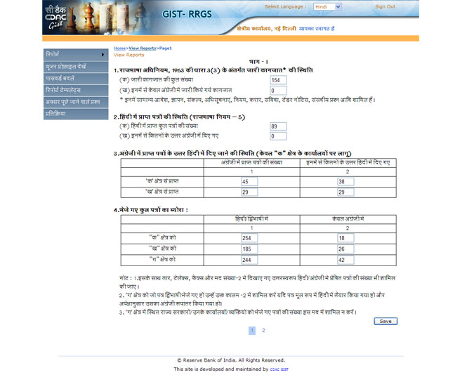GIST Rajbhasha Report Generation Software (GIST - RRGS) - Customizable