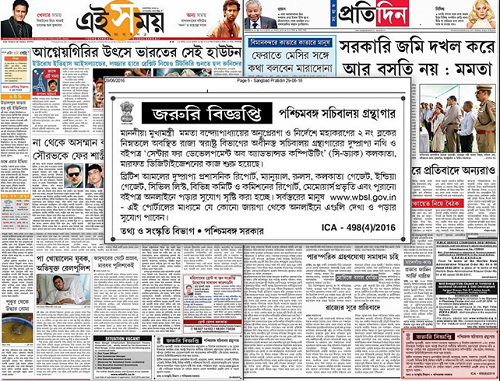 The aim of the project is to digitally preserve and disseminate rare Administrative Reports, Manuals, Rules, Calcutta Gazettes, India Gazettes, Civil List, Reports of various committee and commissions, Memoirs, etc. under the British Rule through www.wbsl.gov.in web portal. The progress of the work is being appreciated by the Government of West Bengal and they have acknowledged the contribution and dedication of CDAC, Kolkata towards the implementation of the project by acknowledging the work of CDAC, Kolkata in the regional newspapers of West Bengal, viz., Ei Samay, Pratidin, Bartaman and Uttarbanga Sambad on June 29, 2016.