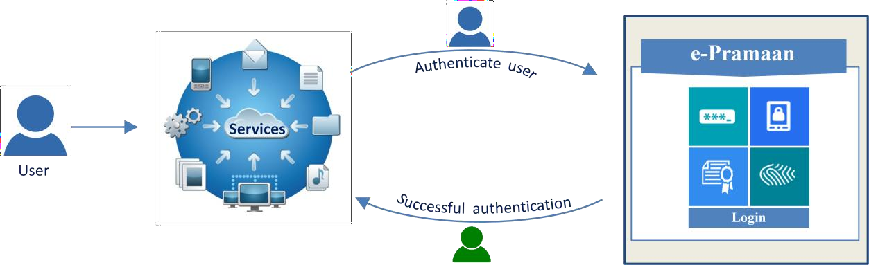 e-Pramaan is an e-Authentication framework, which facilitates multi-factor strong authentication to the users accessing various services using mobile and/or fixed platforms. It is a unique mechanism providing unified log-in facility through SAML 2.0 based Single Sign-On (SSO) for integrated services. The Single Sign-On feature provides registered users a single window access to all services that are integrated with e-Pramaan.