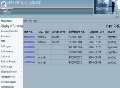 The shipping & receiving module provides support for executing and recording receiving and shipment operations. The receiving sub module authenticates receiving of all materials that come into a facility. Purchase receiving are made against Purchase Orders entered into the system whereas return receiving are made against authorized return Material Authorization (RMA) requests. Authorization of RMA is under the jurisdiction of the Sales department. Four cases, where QA is required as a follow-up procedure, have been identified as - Certain purchase Finished Product Certification, Defective RMA and MRO RMA.