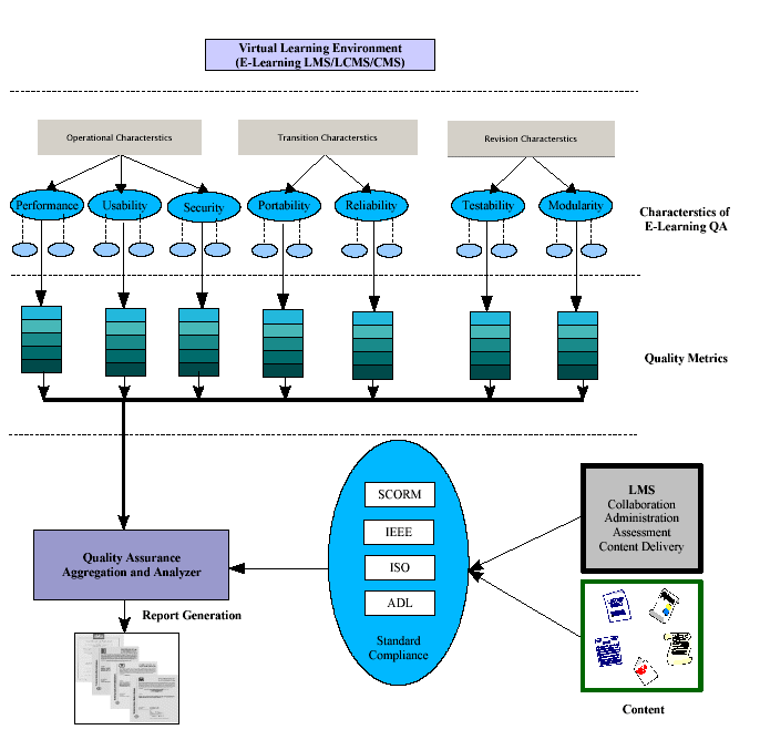 e-Learning is now catching up resulting in proliferation of a large number of learning managemnt systems. Quality assurance of these systems and the content hosted is done on a very informal basis. Formal frameworks do not exist for evaluating the quality of the tools and the content. The identification and quantification of various quality metrics for e-Learning environment is an area of reaseach in e-Learning